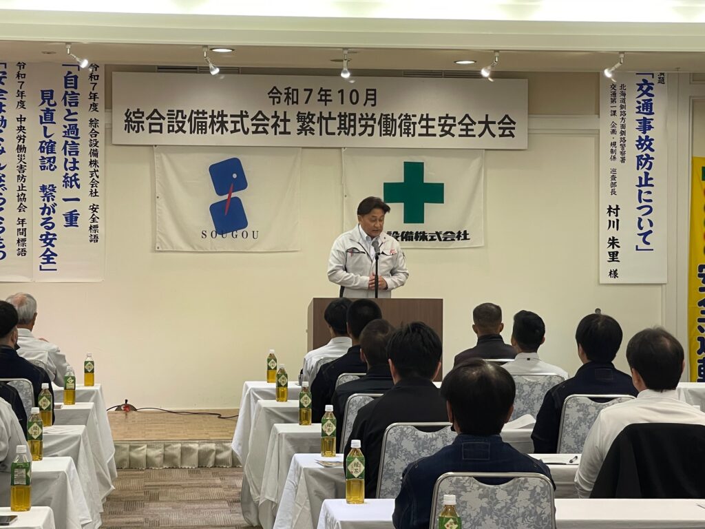 10月1日(水) アクア・ベールくしろにて「令和7年10月 繫忙期労働安全衛生大会」を開催いたしました。