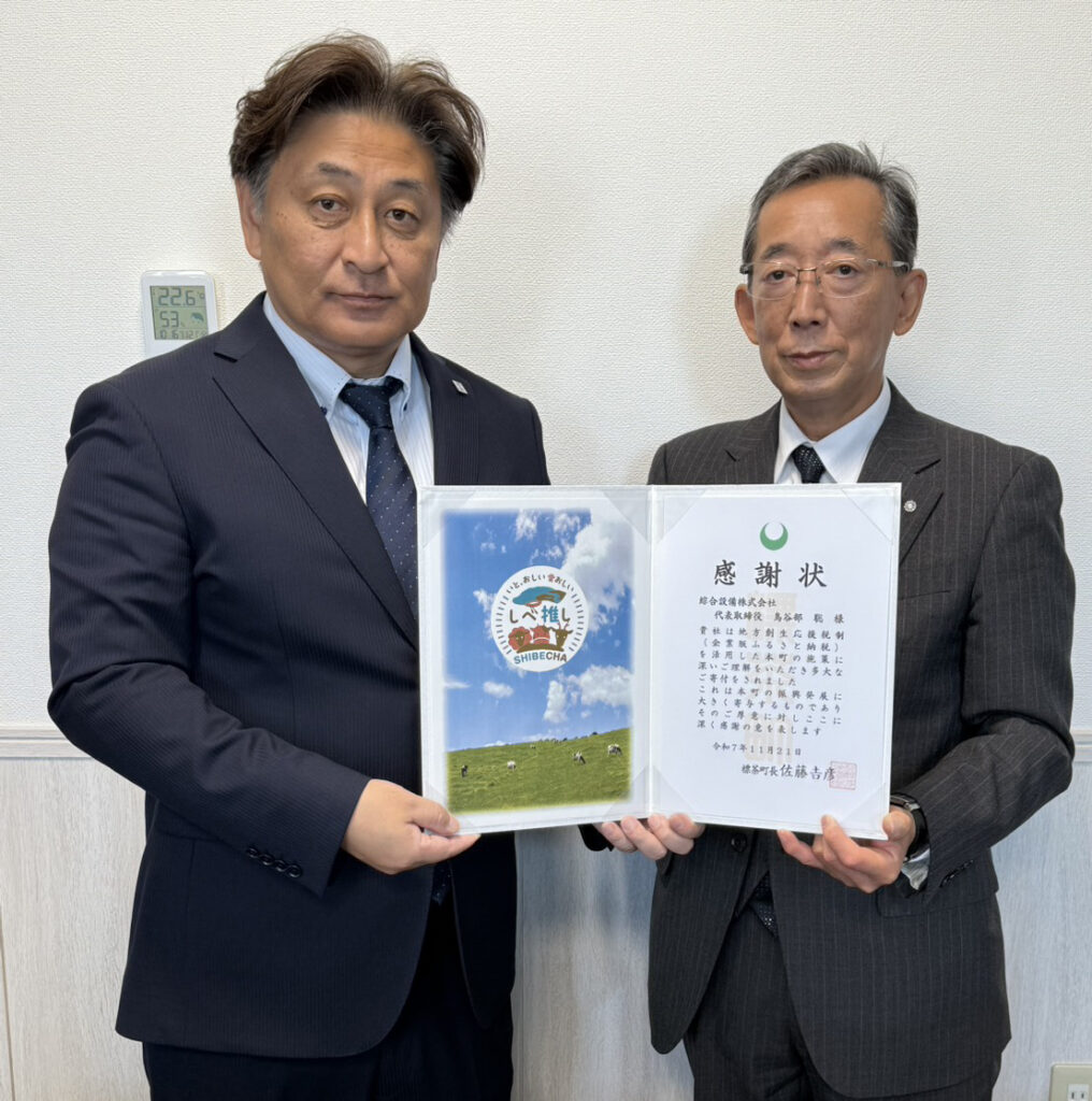 11月21日(金) 当社にて標茶町長より感謝状を頂きました。